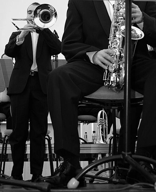 Muito boa!! Gosto do B&W, e da prespectiva. O músico de trás parece muito pequeno em relação ao da frente. Faz-me lembrar um trabalho a 3D. Parabéns !!
